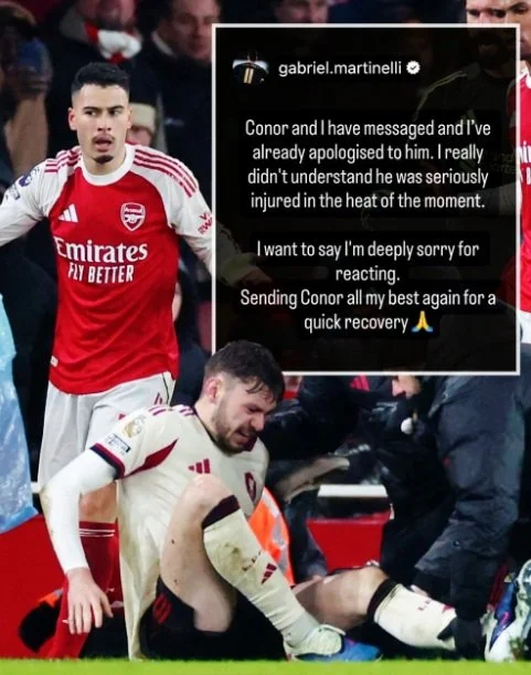 Martinelli’s statement acknowledged the misunderstanding rather than make excuses and it centres the injured player.